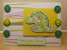 The background paper is from Funky Fairy and the little smiley faces were real cheapy foam thingies! Image coloured with Whispers brush pens and Sharpies. Inked the edge of that and the sentiment and chalked them both up. OK all done for the night - Josh has friend over for a sleepover tonight so not expecting much sleep!